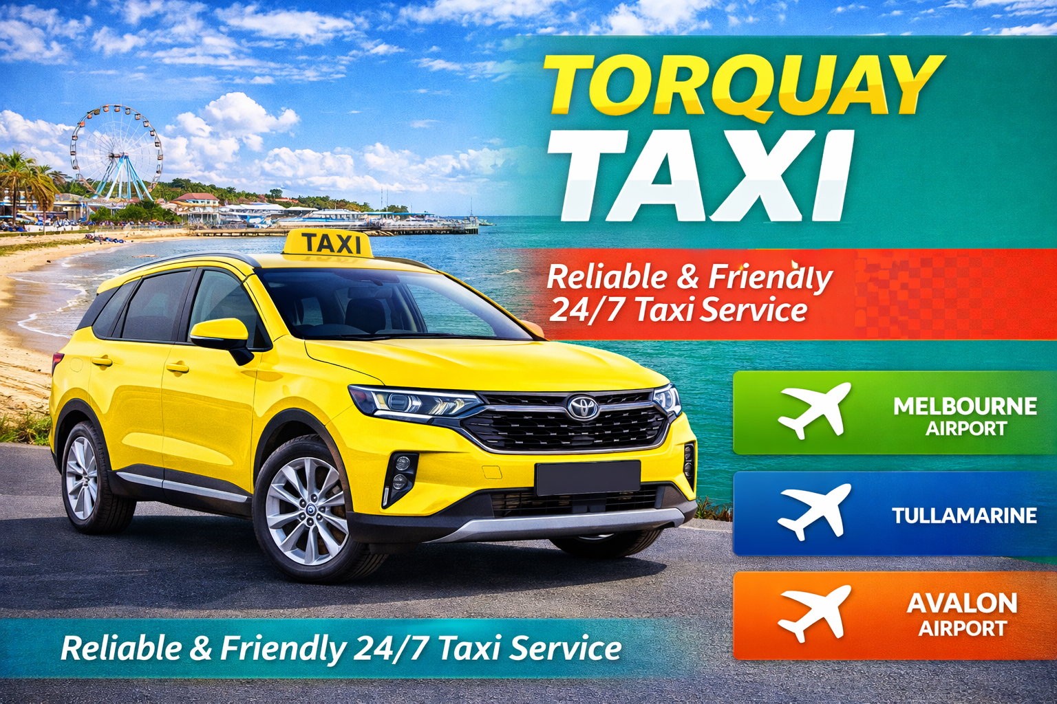 Book a Torquay Taxi for safe, on-time rides anywhere in Torquay. 24/7 service, professional drivers, comfortable vehicles, and fixed fares.